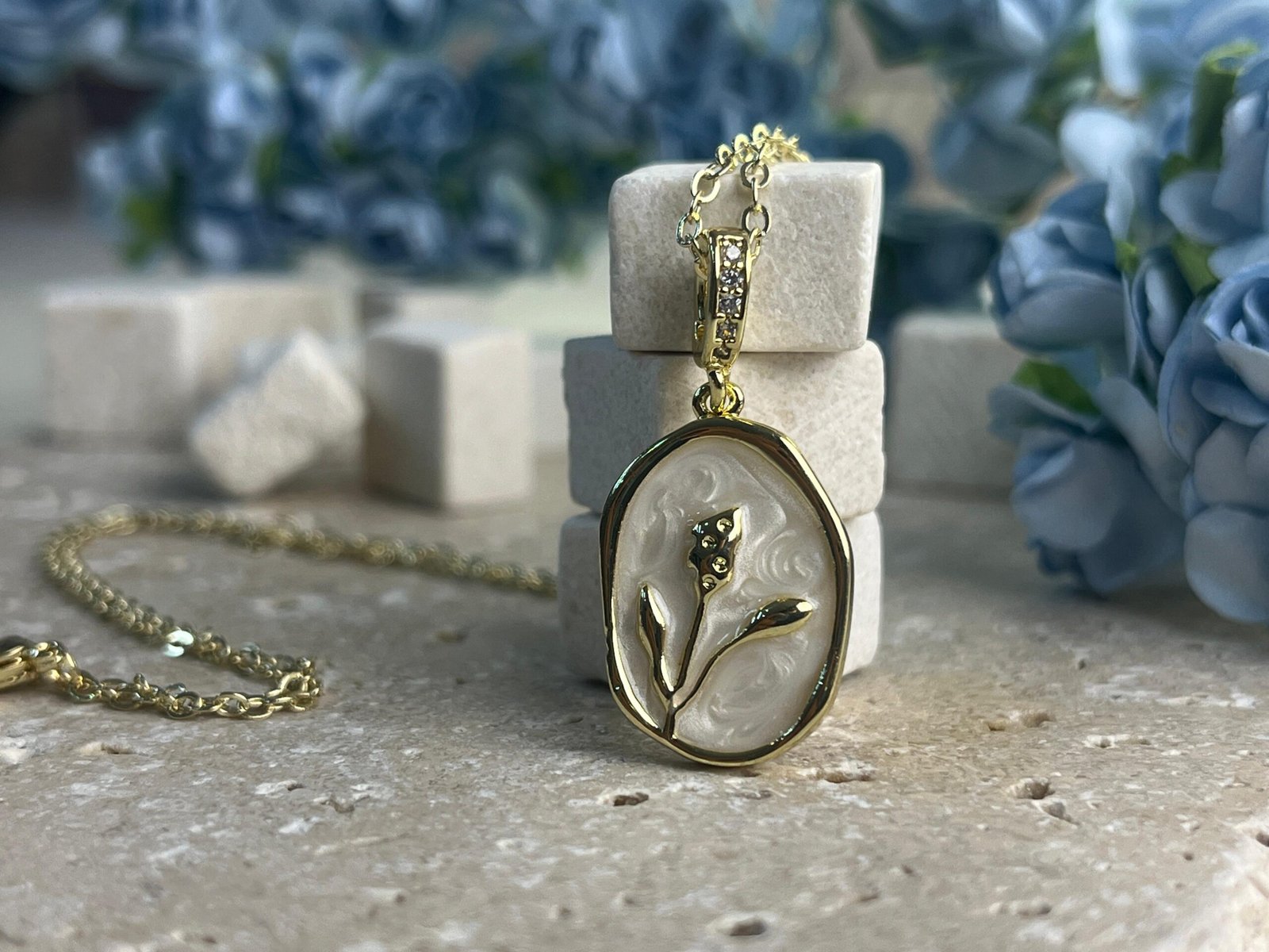 CaliyanisMağazaUncategorizedGold Beyaz Aurora Bloom Kolye – CYCH0001