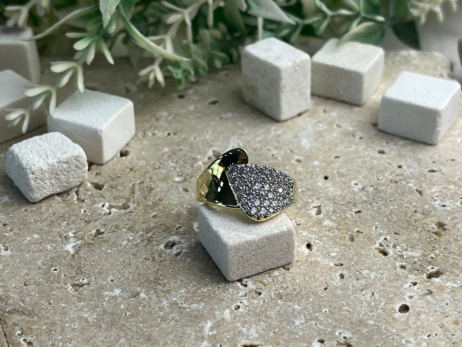 Caliyanis’ten yüzüğün asimetrik tasarımı, modern bir şıklık ve zarafet sunar.