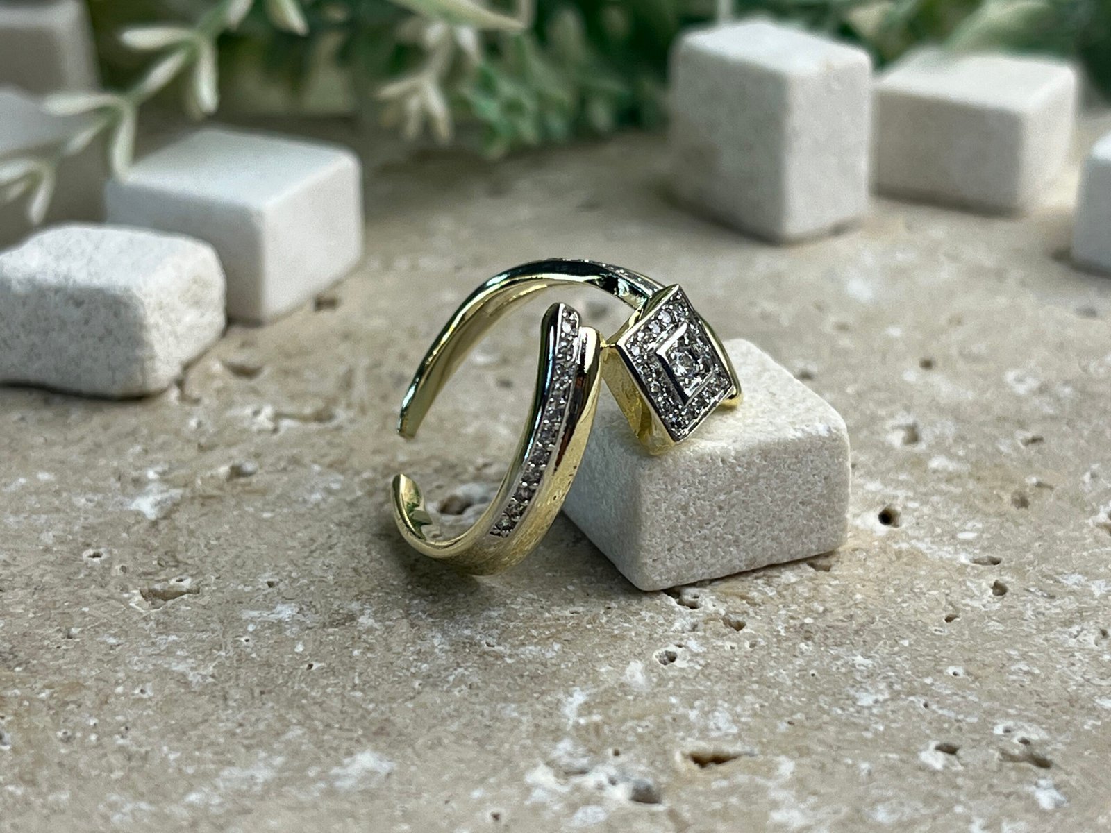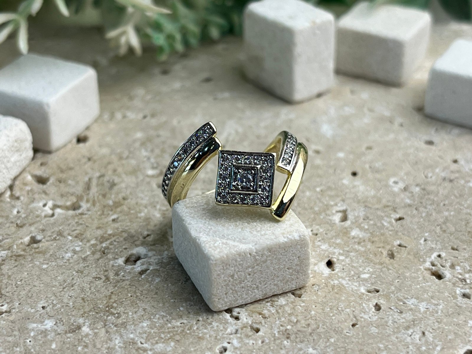 Caliyanis’ten yüzüğün kare şekli, çağdaş bir tasarım anlayışını yansıtır.